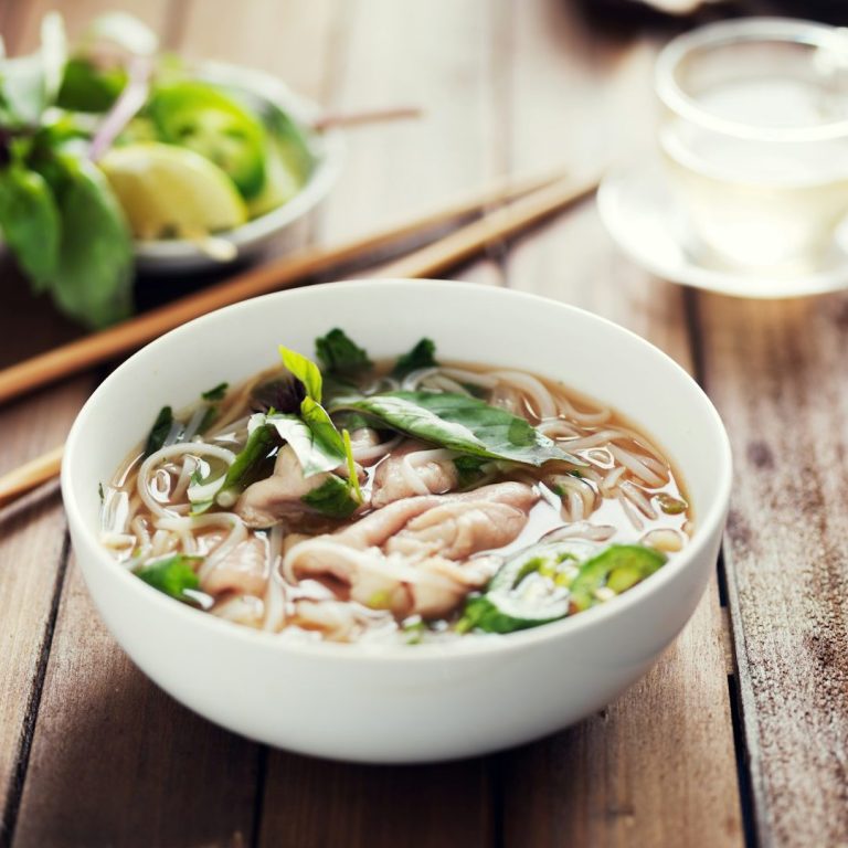 Pho ist eine traditionelle vietnamesische Suppe, die für ihre aromatische Rinderbrühe bekannt ist. Wir achten darauf, dass die Brühe über mindestens 12 Stunden gekocht wird, um die Aromen vollständig zu entfalten. Mit frischen Kräutern, Reisnudeln und zartem Rindfleisch wird dieses Gericht zu einem Geschmackserlebnis.
